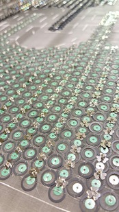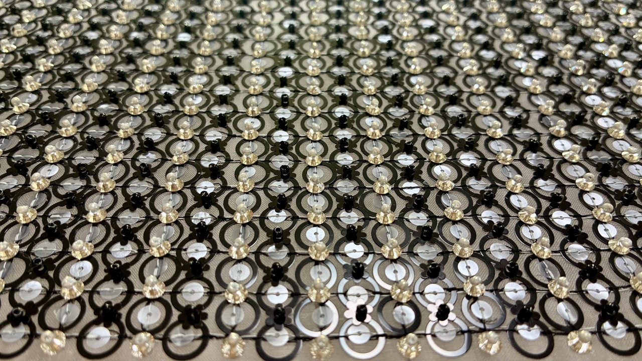 グレーのスパンコール×ブラック×クリスタルでシャープな雰囲気。花型スパンコールで大人な甘さを少し。