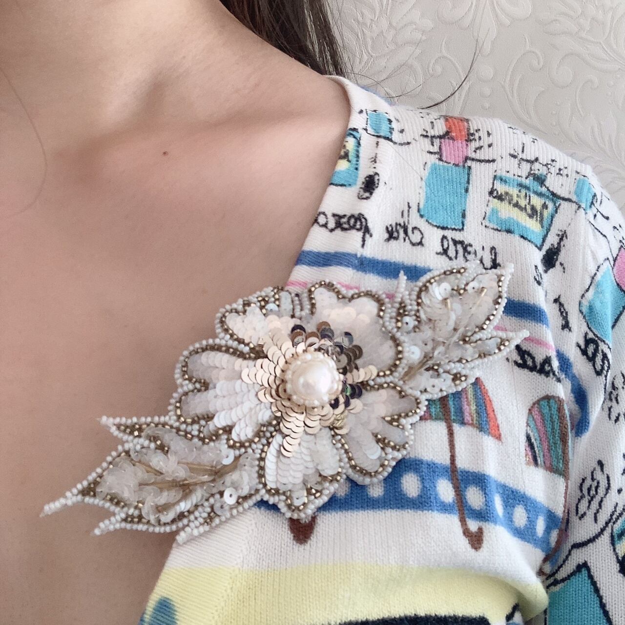 ローズの花はそれぞれ2種類のビーズとスパンコールのグラデーションを刺繍しました。中央は淡水パールやビジューで上品な輝きをプラスし、裏面はそれぞれのカラーに合う本革で仕立てしています。サイドに斜めに付けたり、Vネックのワンピースの中央に付けていただくのもオススメです。見た目よりも軽量なのでお洋服の生地を痛めにくく、様々なシーンでお使い頂けると思います。シレーヌの全てのブローチはヘアアクセサリーと兼用できます。